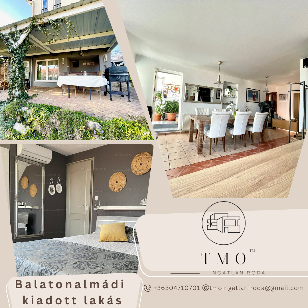 Balatonfelvidéki nyaraló lélegzetelállító panorámával – Pécsely, Öreghegy Egyedi lehetőség, hogy a Balaton közelségében, Tihany és Balatonfüred szomszédságában. töltsön pár hónapot vagy akár egy évet anélkül, hogy ingatlant vásárolna! Próbálja ki ezt az életérzést, amit ez a kiváló állapotú, páratlan természeti környezetben, örökpanorámával rendelkező ingatlan kínál Önnek Pécsely Öreghegyén. A Balatonfelvidék egyik legszebb részén, a Pécselyi-medencében található az ingatlan, karnyújtásnyira a Balatontól és a legközelebbi strandoktól. Balatonfüred és Tihany mindössze 10 km, de Veszprém is viszonylag közel van, 21 km-re. Számtalan túraútvonal övezi és a történelmi Zádor vár is itt található. A kerékpártúrák ( szerelmesei is megtalálják itt a számításukat, mivel több, jól kijelölt útvonal halad a környéken. Aki pedig szereti a kulináris élményeket, a friss kenyér illatát, betérhet a Hét kenyér zarándokpékségbe is, mely gyalogosan, biciklivel vagy lóháton megközelíthető. Veszprém fesztiváljai, a népszerű Művészetek Völgye, a Palóznaki Jazz Piknik egy ugrásnyira találhatóak, így a kulturális programokat keresők sem maradnak program nélkül. Az ingatlan jellemzői: 3158 m²-es gondozott terület, mandulafákkal, dió- és cseresznyefákkal, valamint szőlőtőkékkel. Kerti öntözőrendszer biztosítja a gyönyörű, gondozott kertet. Maga az épület 144 m², a földszint 67 m², az emelet 77 m² , valamint ~100 m² szibériai vörösfenyő borítású kültéri, fedett terasz. A fedett teraszon található kandalló melegénél borozgatva csodálhatjuk a páratlan panorámát, megmártózhatunk a dézsában egy aktív nap zárásaként vagy csak relaxálásként elnyújtózva a vízben. A földszinten egy modern, rusztikus stílusú konyha, otthonos nappali fogad. A nappali fatüzeléses kandallója romantikus hangulatot és kellemes meleget áraszt. Az emeleten található a külön lépcsővel megközelíthető, világos és tágas hálószoba, saját Balaton-panorámás terasszal. A hálóban egy egyedi készítésű, 180 x 200 cm-es franciaágyat helyezett el a tulajdonos. Emellett még egy szoba került kialakításra, amely kényelmes szálláshelyet biztosít több vendég számára is a hat darab, egyedi, rakásolható egyszemélyes ággyal. A pince loft stílusú, extra kényelmes kanapéágy és led TV áll a bérlő rendelkezésére. Az ingatlanban 32 A áram található, a hidegvíz-ellátás a fúrt kút házivízmű rendszerrel és 1000 l víztárolóval, a melegvíz-ellátás a 80 literes villanybojlerrel történik. A szennyvizet a 4 m³-es bio szennyvíztároló tárolja. Az házban hűtő-fűtő klímák találhatóak és a nappaliban pluszban még a fatüzeléses kandalló. Ingyenes Wi-Fi biztosított az ingatlan egész területén. Külső kamerákkal felszerelt az ingatlan területén a biztonság érdekében. Minimum bérlési időszak: 3 hónap. Kaució: 3 havi bérleti díj. Bérleti díj: 1.490.000 Ft Ez az ingatlan nem csak egy ház, hanem egy életstílus, ahol a természet közelsége és a modern kényelmi megoldások találkoznak. A lenyűgöző panoráma, a gondosan kialakított belső terek és a sokoldalú kültéri lehetőségek egyedülálló élményt nyújtanak. Miért ne élne ezzel a lehetőséggel? Szakadjon ki a város zajából, éljen a természetben, de nem nélkülözve a megszokott kényelmet! Hívjon, tekintse meg és legyen az Ön a bérlője ennek a különleges ingatlannak!