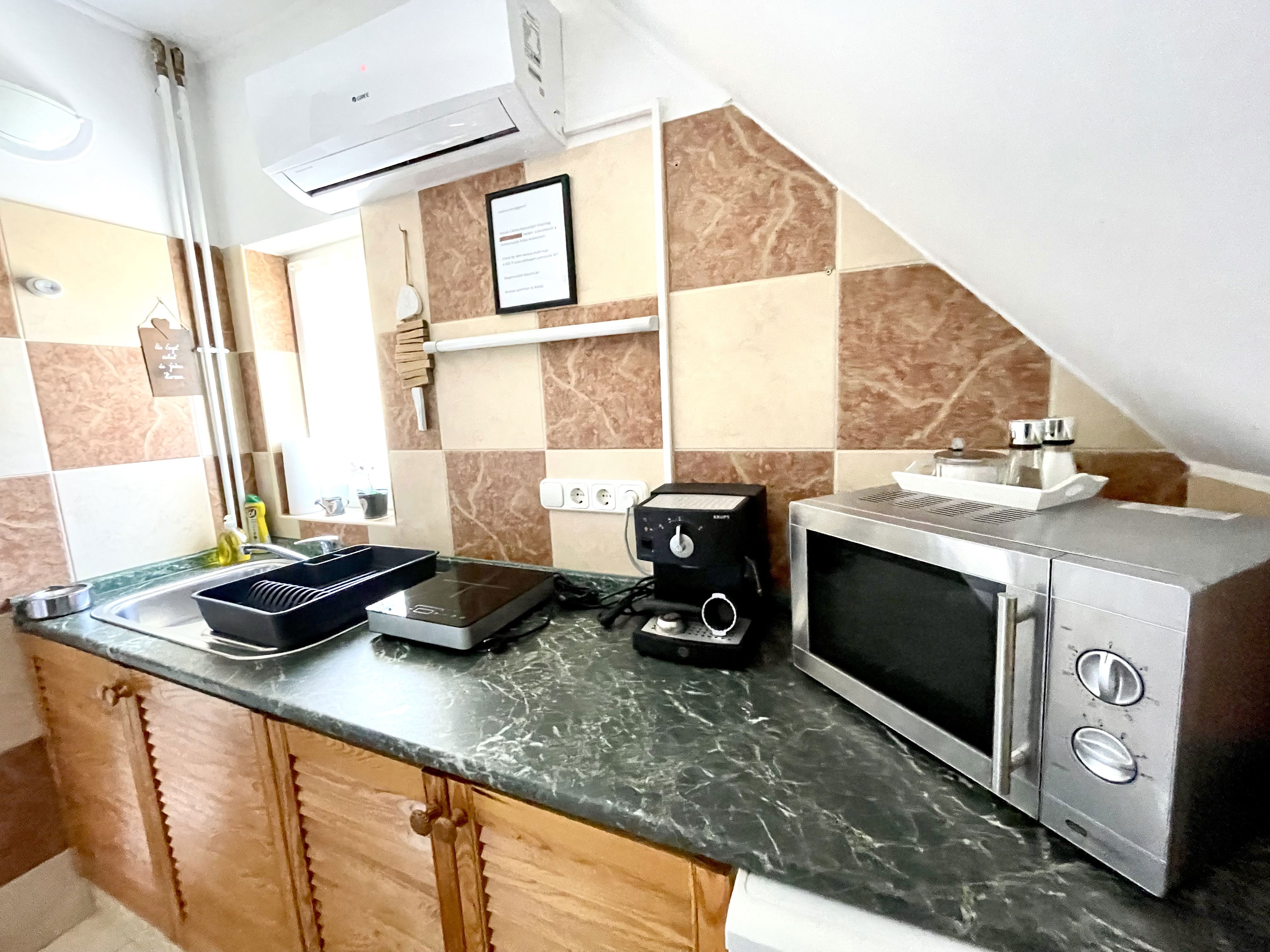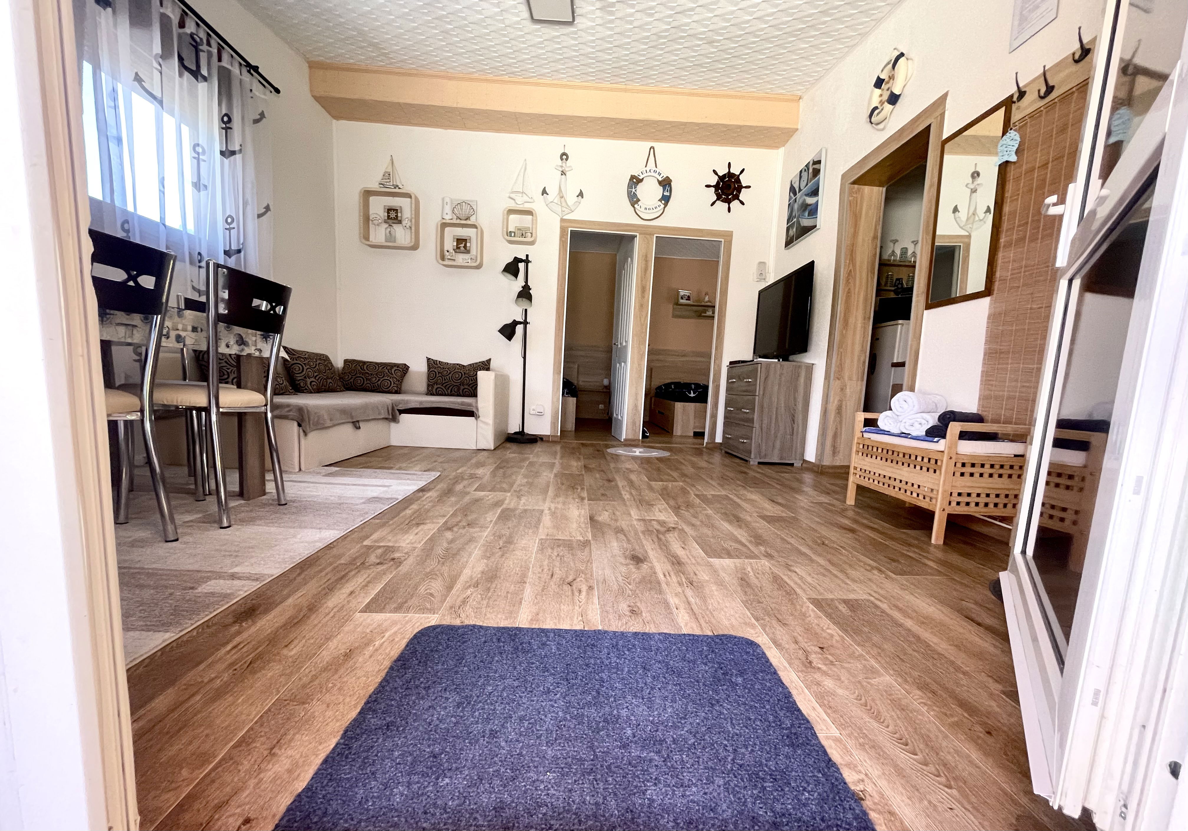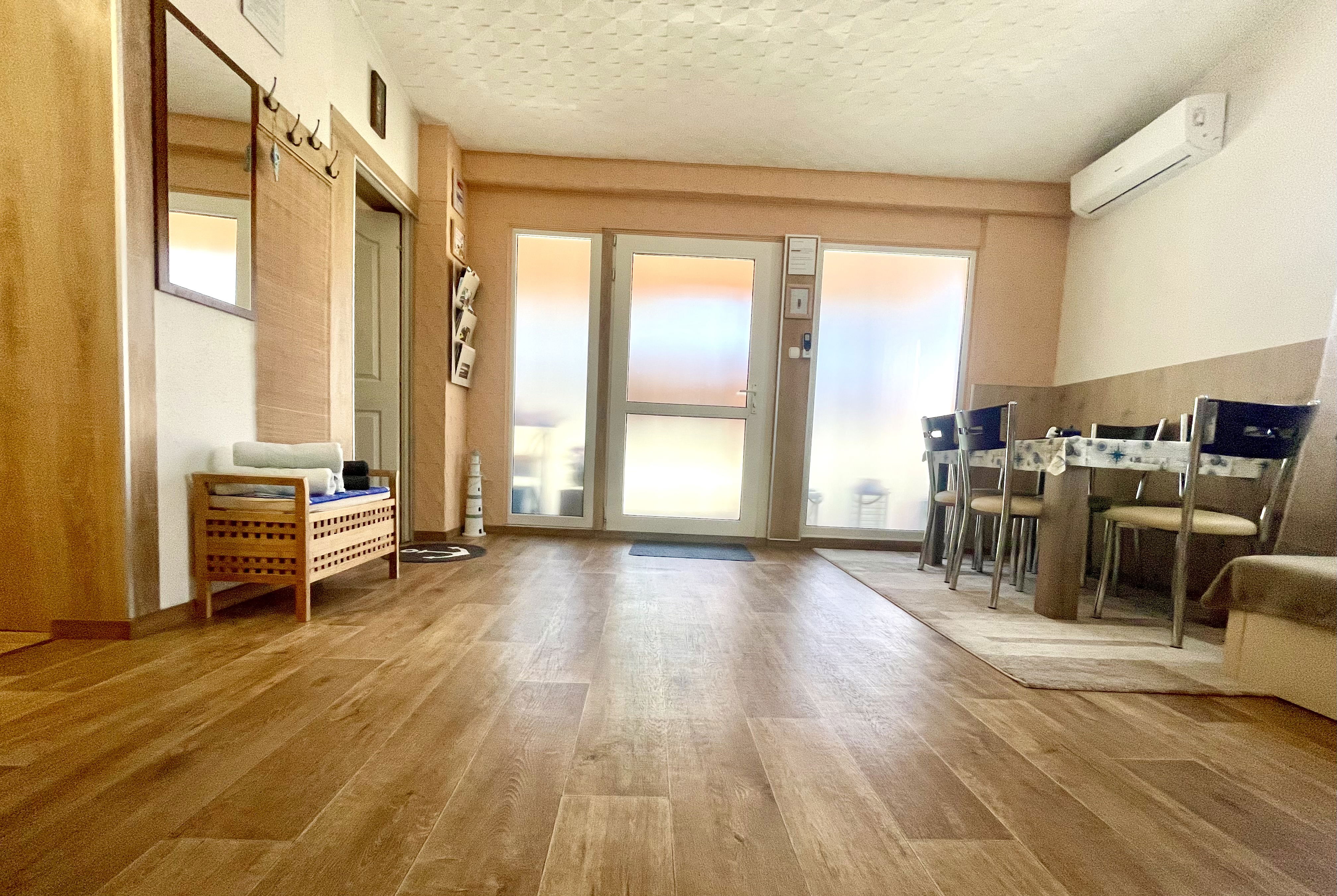 Kiváló lokáció, a strand gyalog öt perc, éttermek, bolt, pékség szintén öt perc séta alatt elérhetőek.