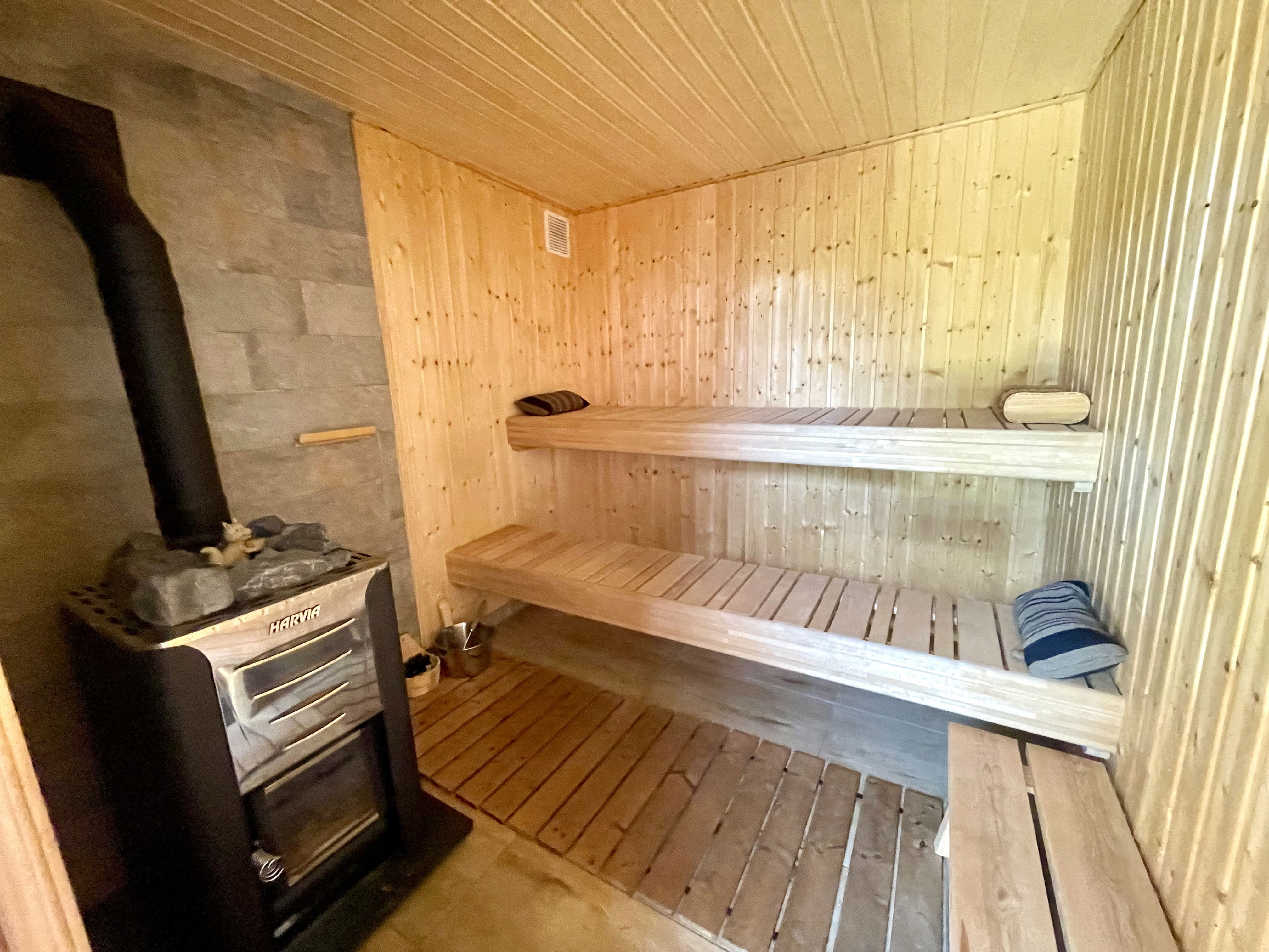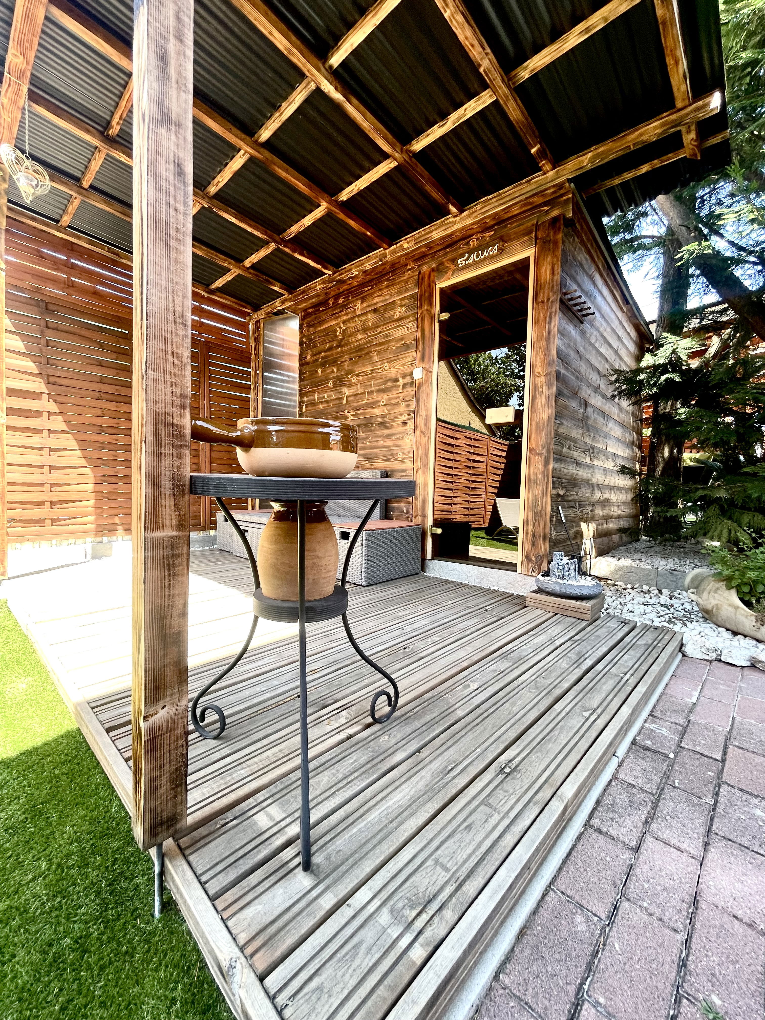 A pihenőterasz és grillterasz lezárása a finn szauna.