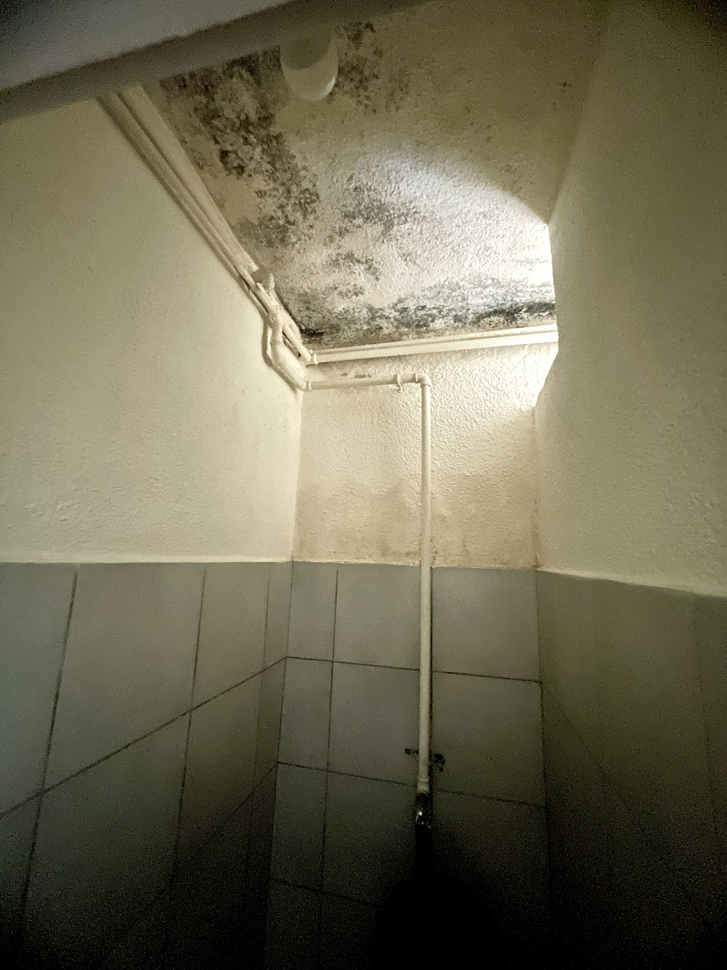 A fűtés hiánya miatt a wc-k és a raktárak a rendszeres festés ellenére penészesednek.