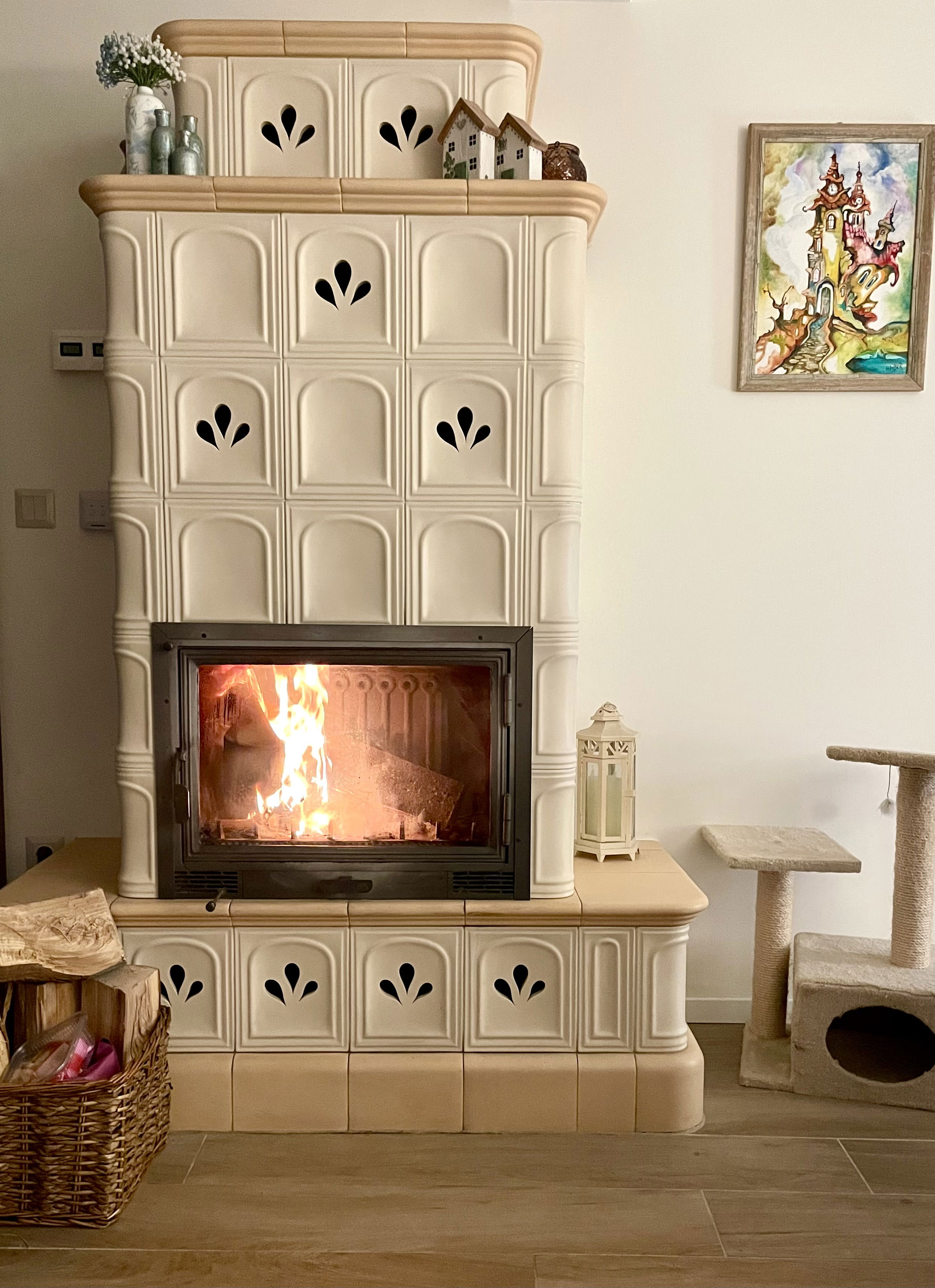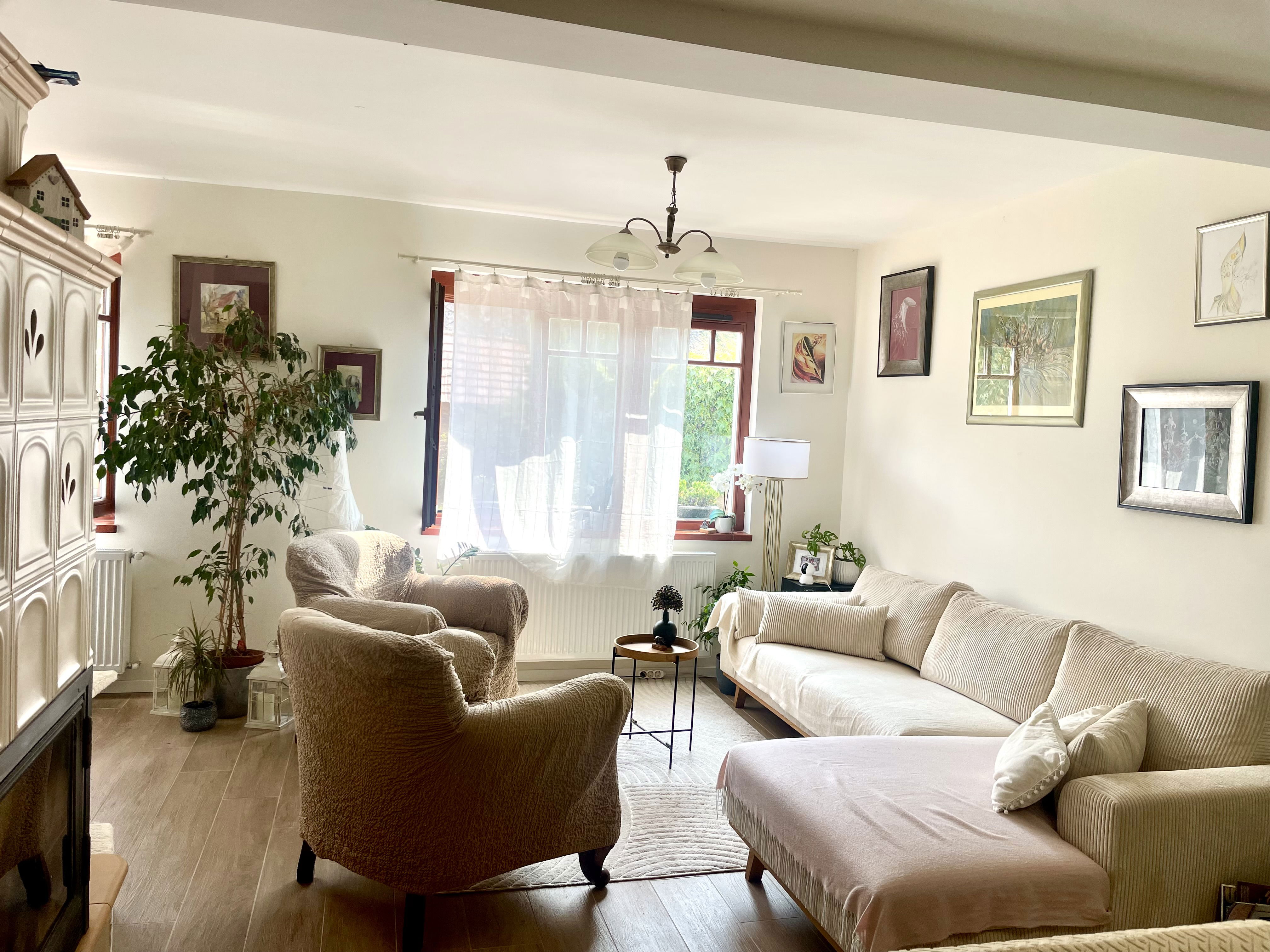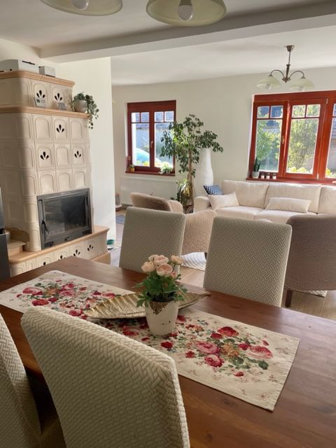 Egész nap világos, fényes és tágas ez a helyiség. Itt található a vízteres kandalló, mely alternatív fűtési lehetőséget kínál.