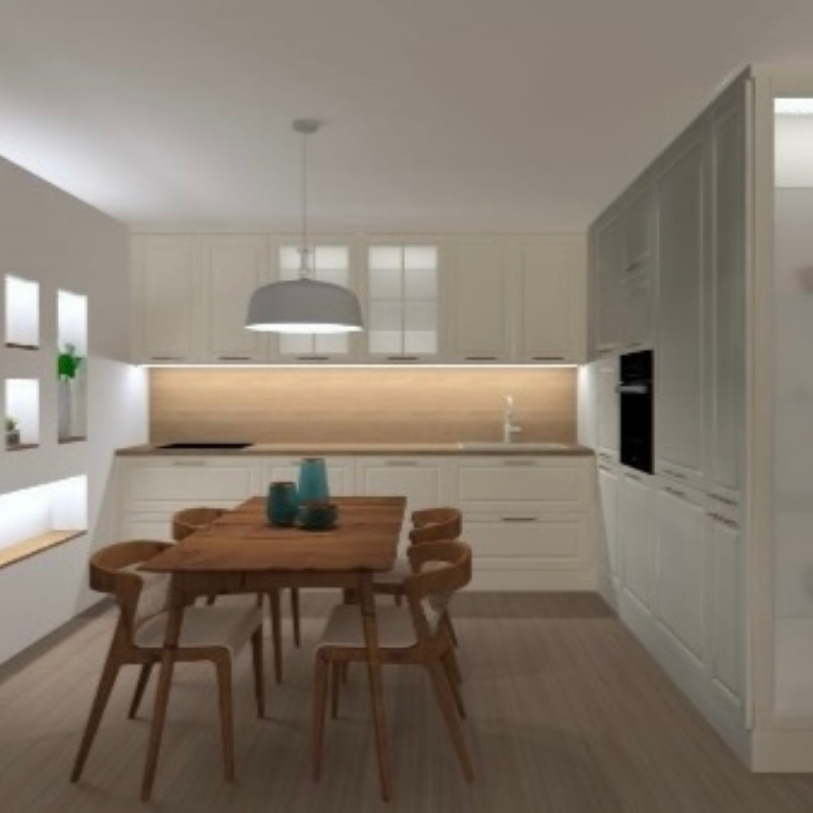Jelenleg a fürdőszobabútorok és a konyha elkészítésére a látványtervek készek, az árajánlatok bekérési folyamata zajlik. Ettől függetlenül mind a fürdőszoba, mind a konyha működőképes.