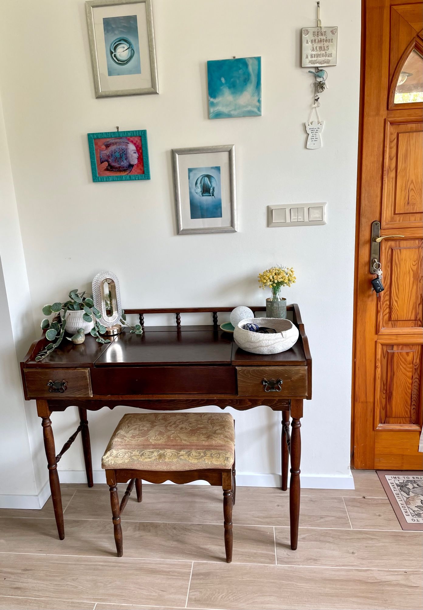 Gardróbszoba került kialakításra, a konyha megnagyobbítása a spejzfal kivételével megtörtént.