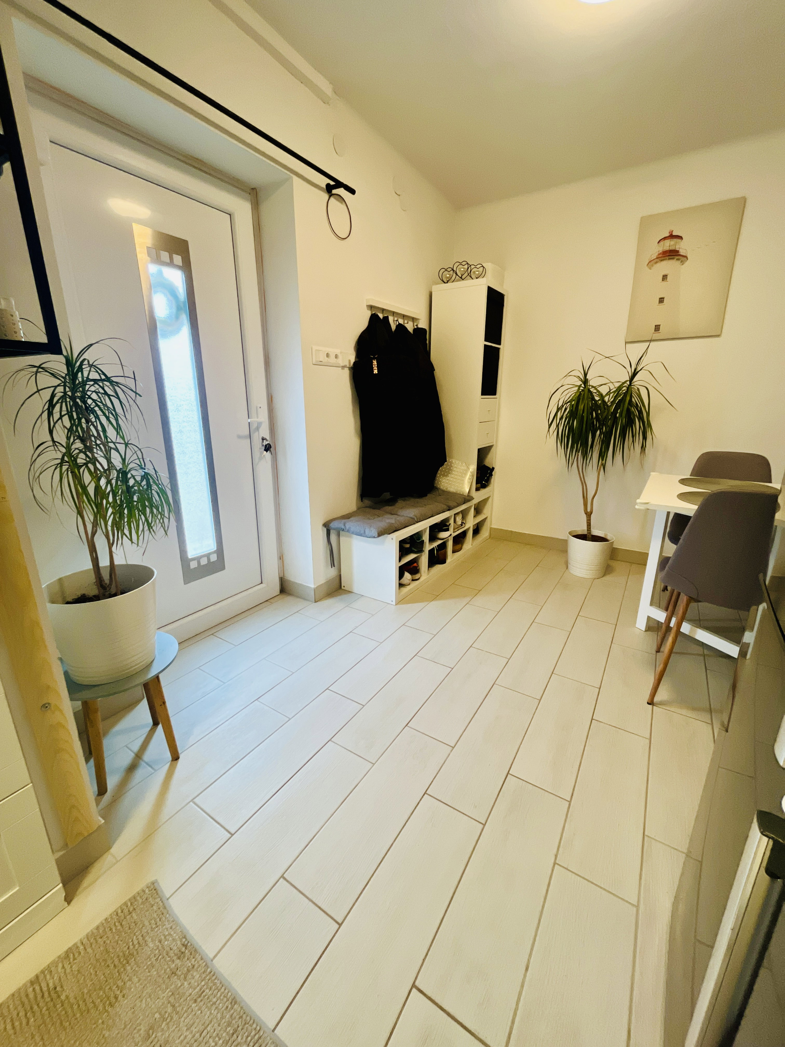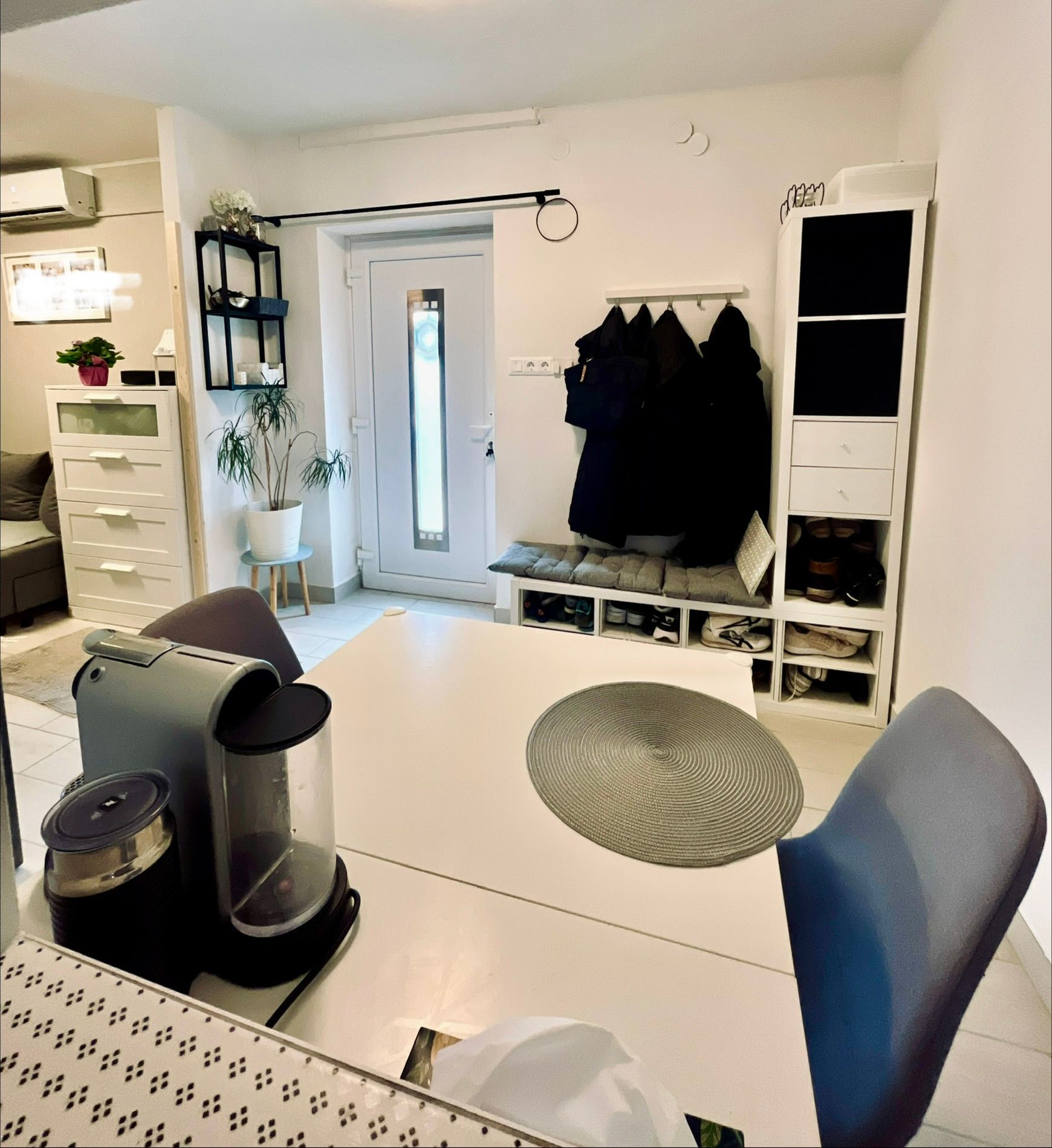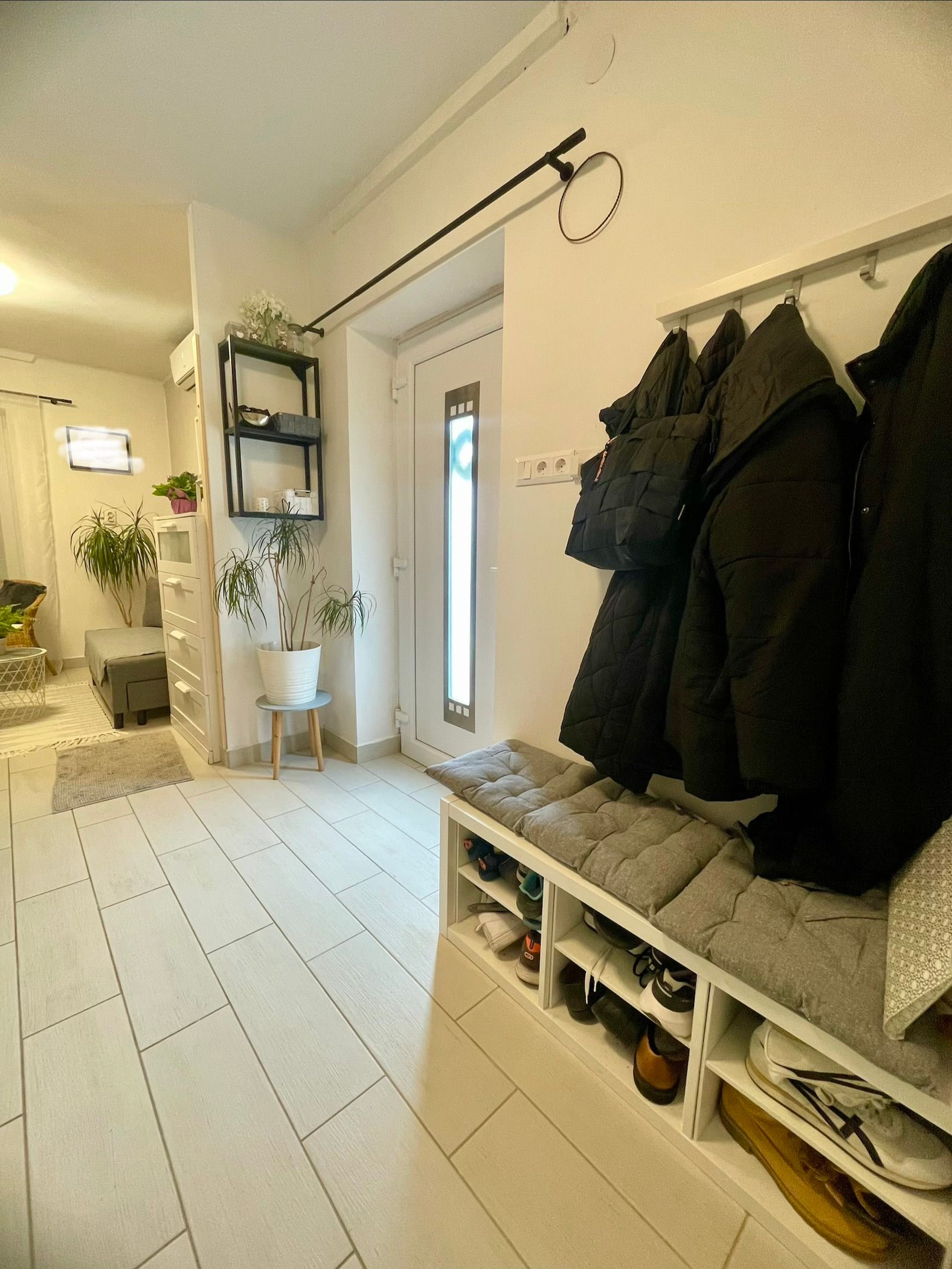 A bejáraton belépve egy tágas, mégis otthonos előtér - étkező (7,5 m2) fogad, amely finoman kapcsolódik a 17 m2-es nappalihoz.