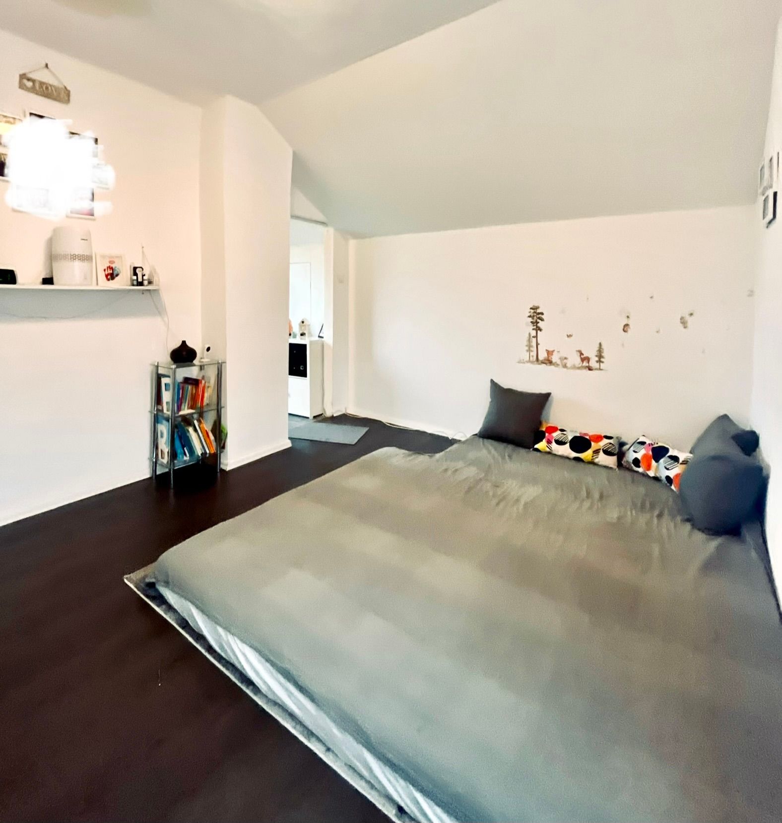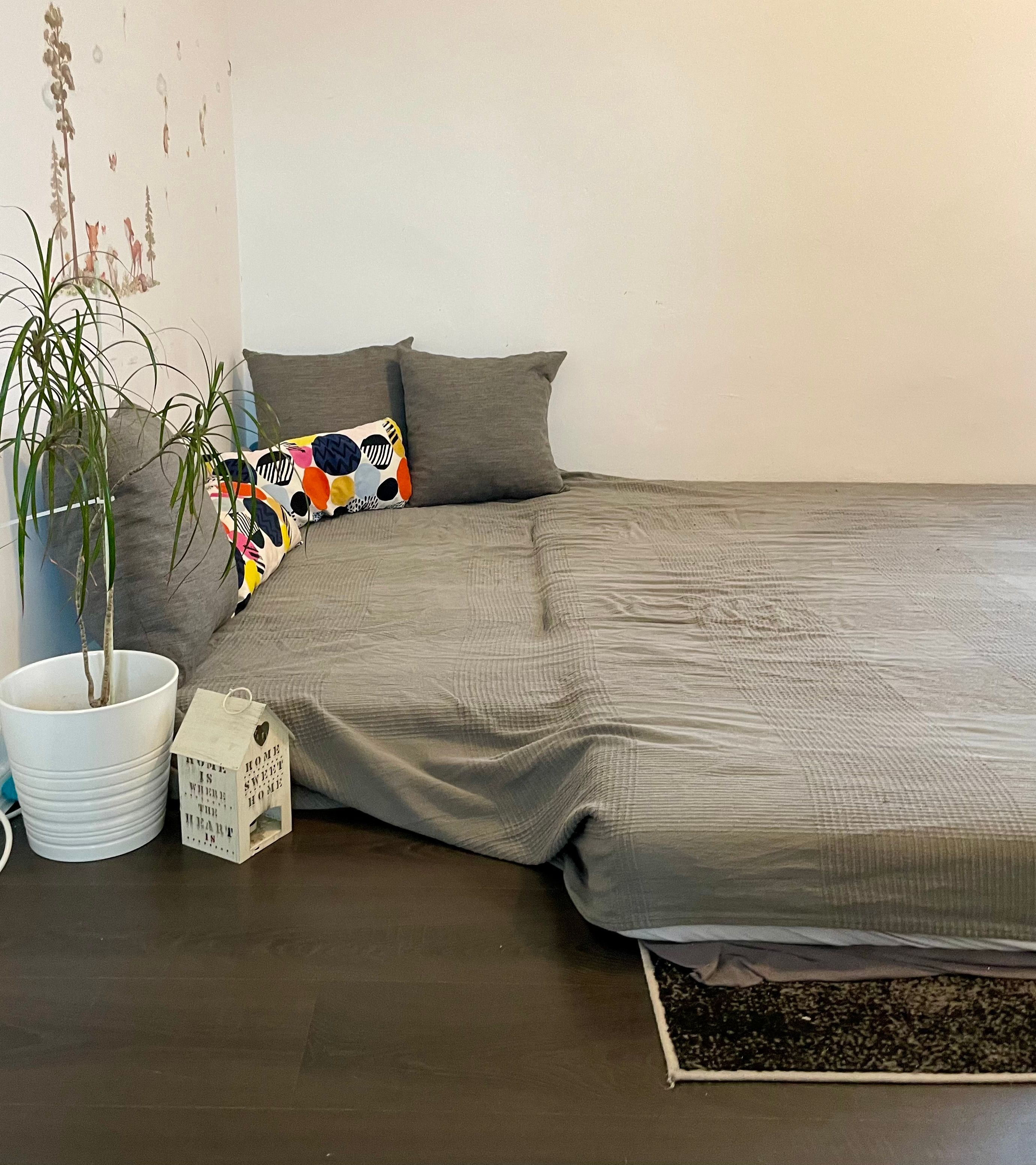 A hálószoba 14 m2 - vel kényelmes méretű, jól szigetelt, csendes, ideális pihenésre.
