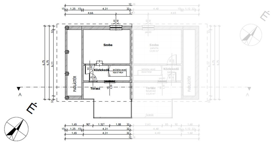 65 m² lakótér + 23,5 m² pince + a teraszok területe: 22 m²