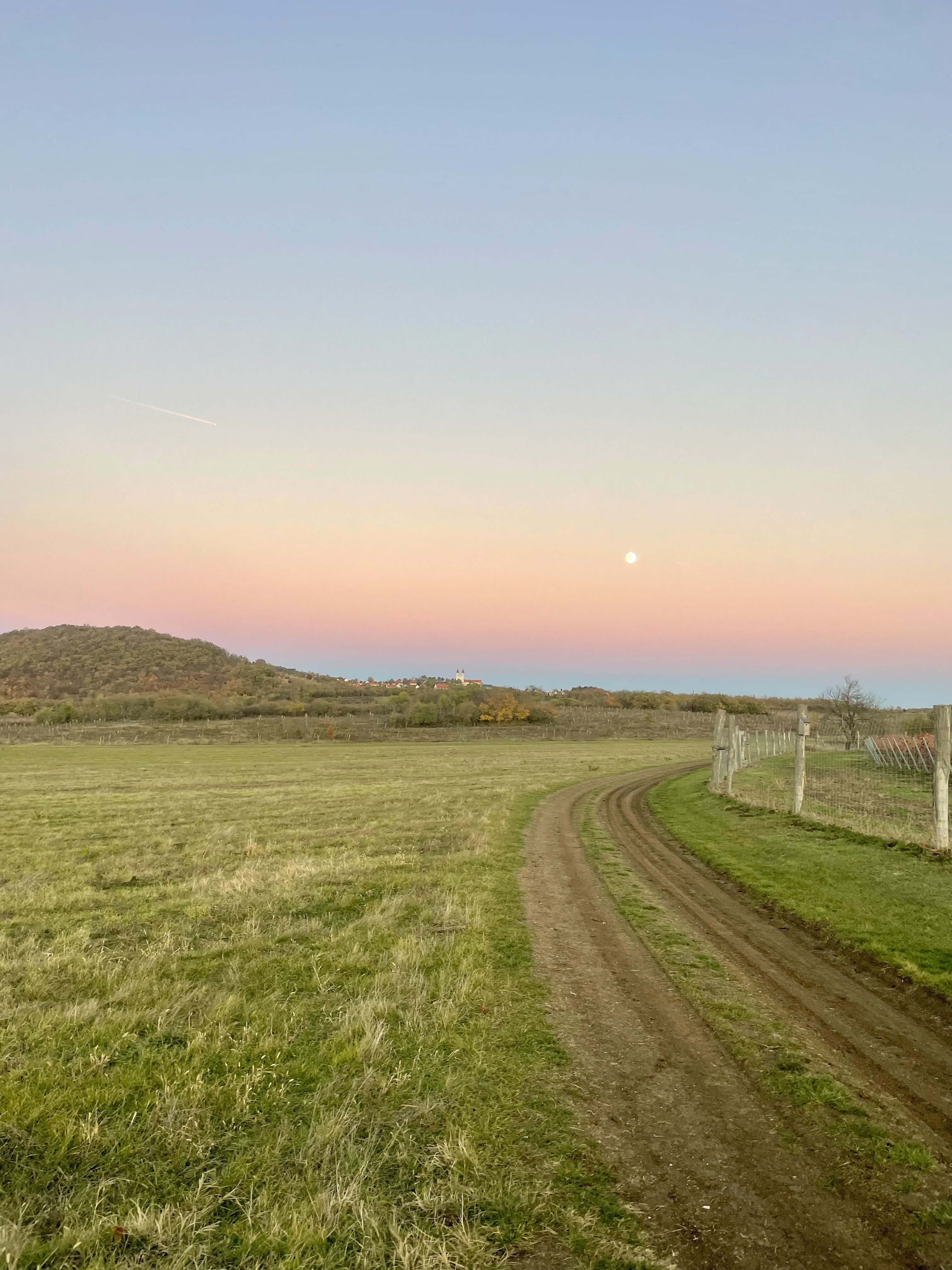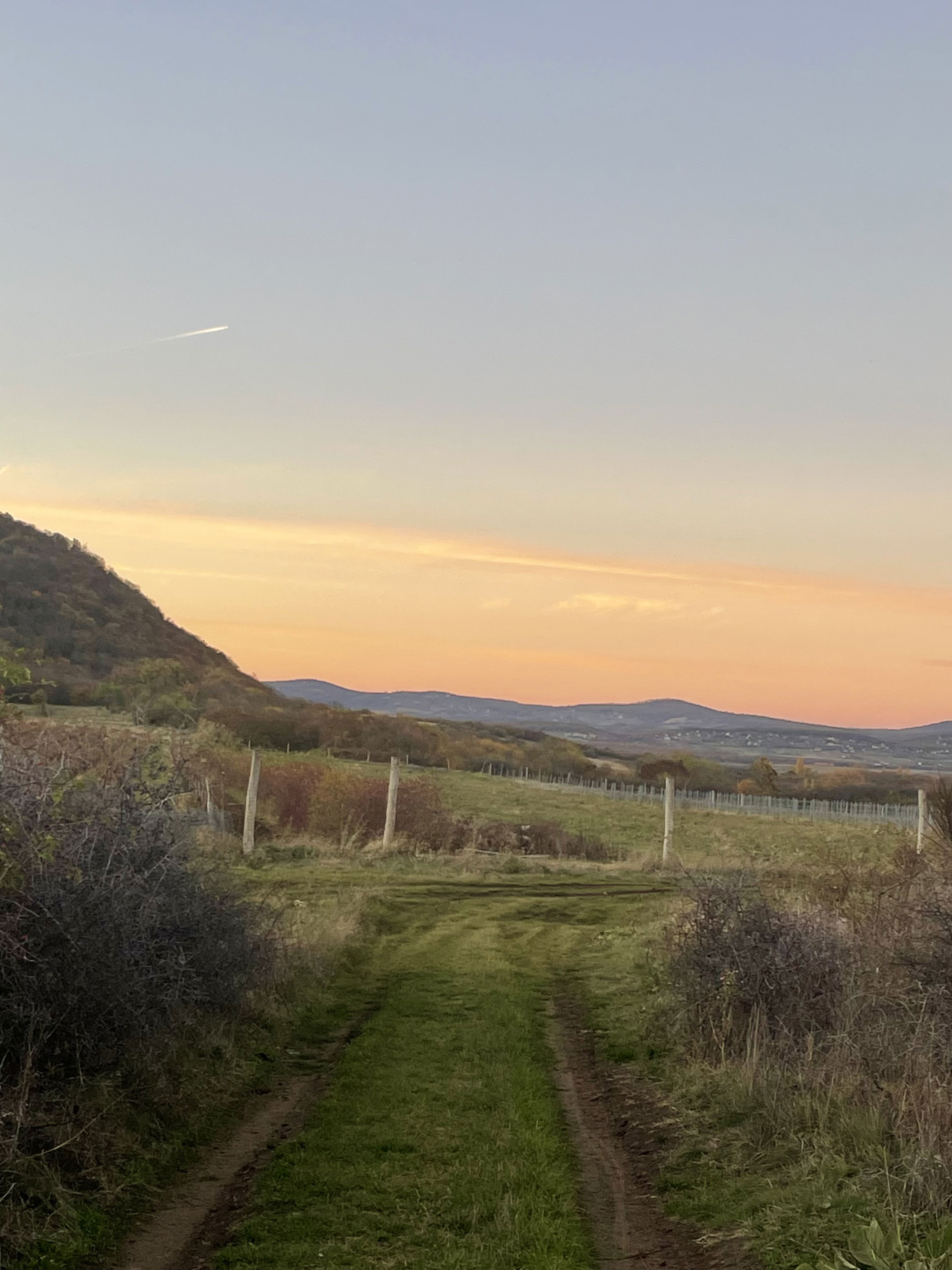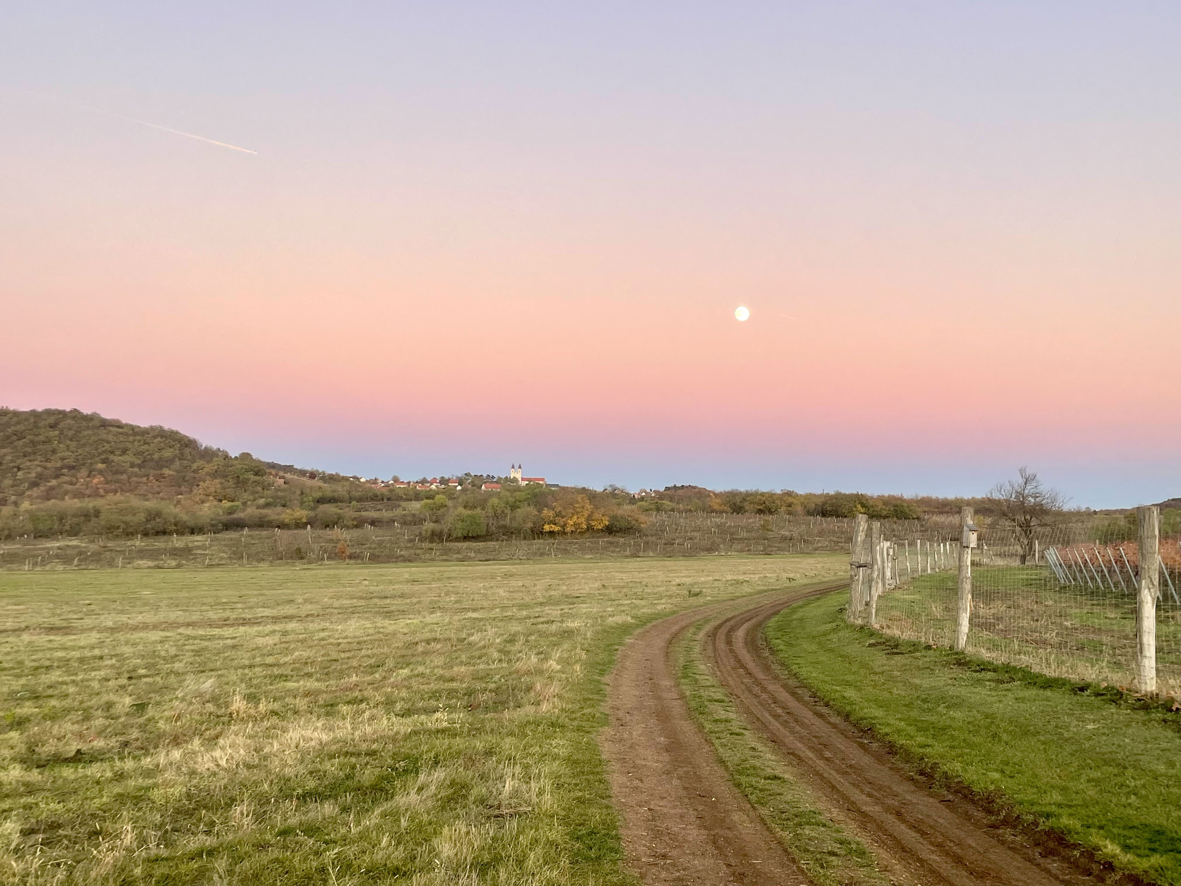 A két terület között út húzódik, szomszédja egy elkerített szőlő.