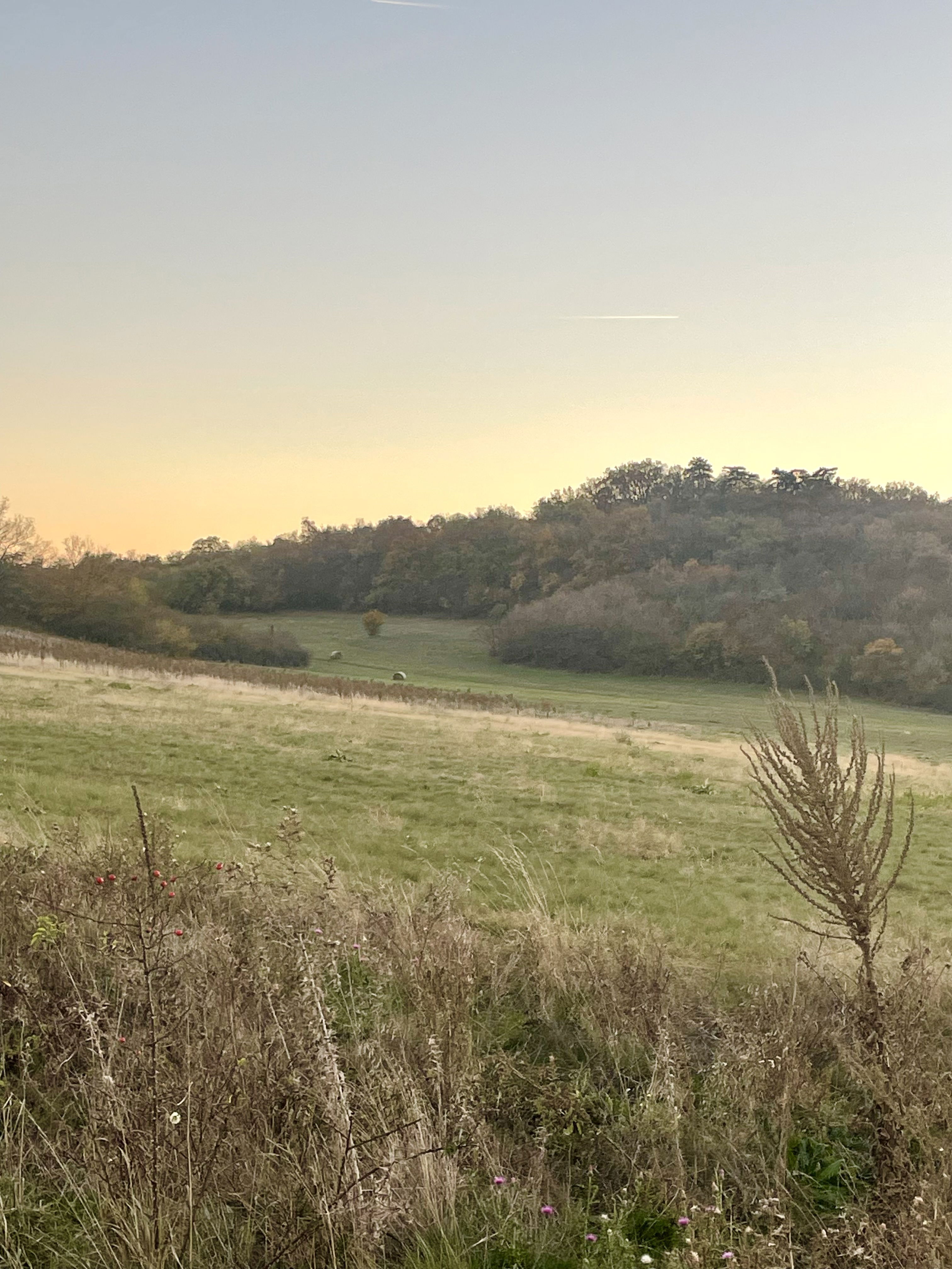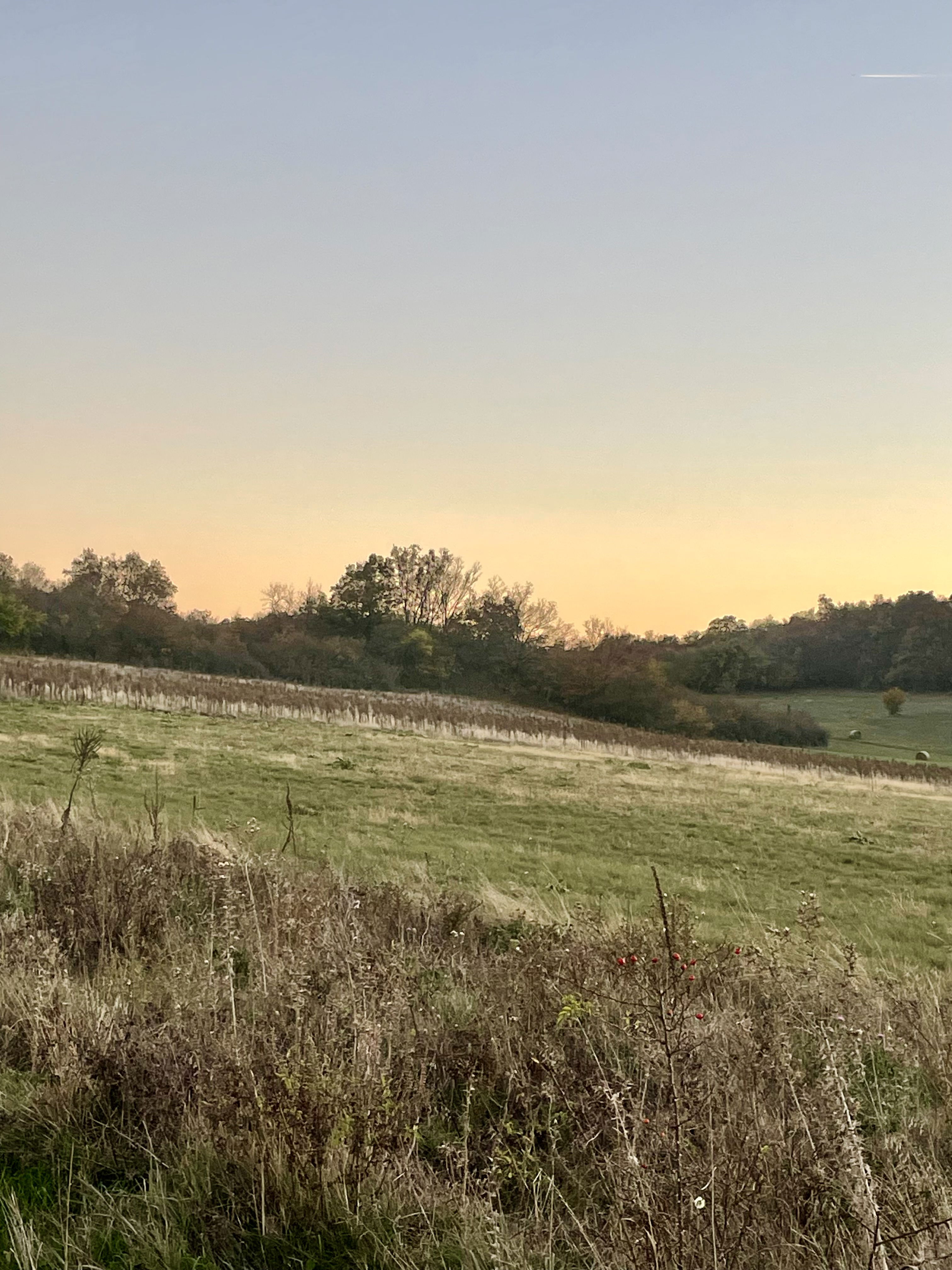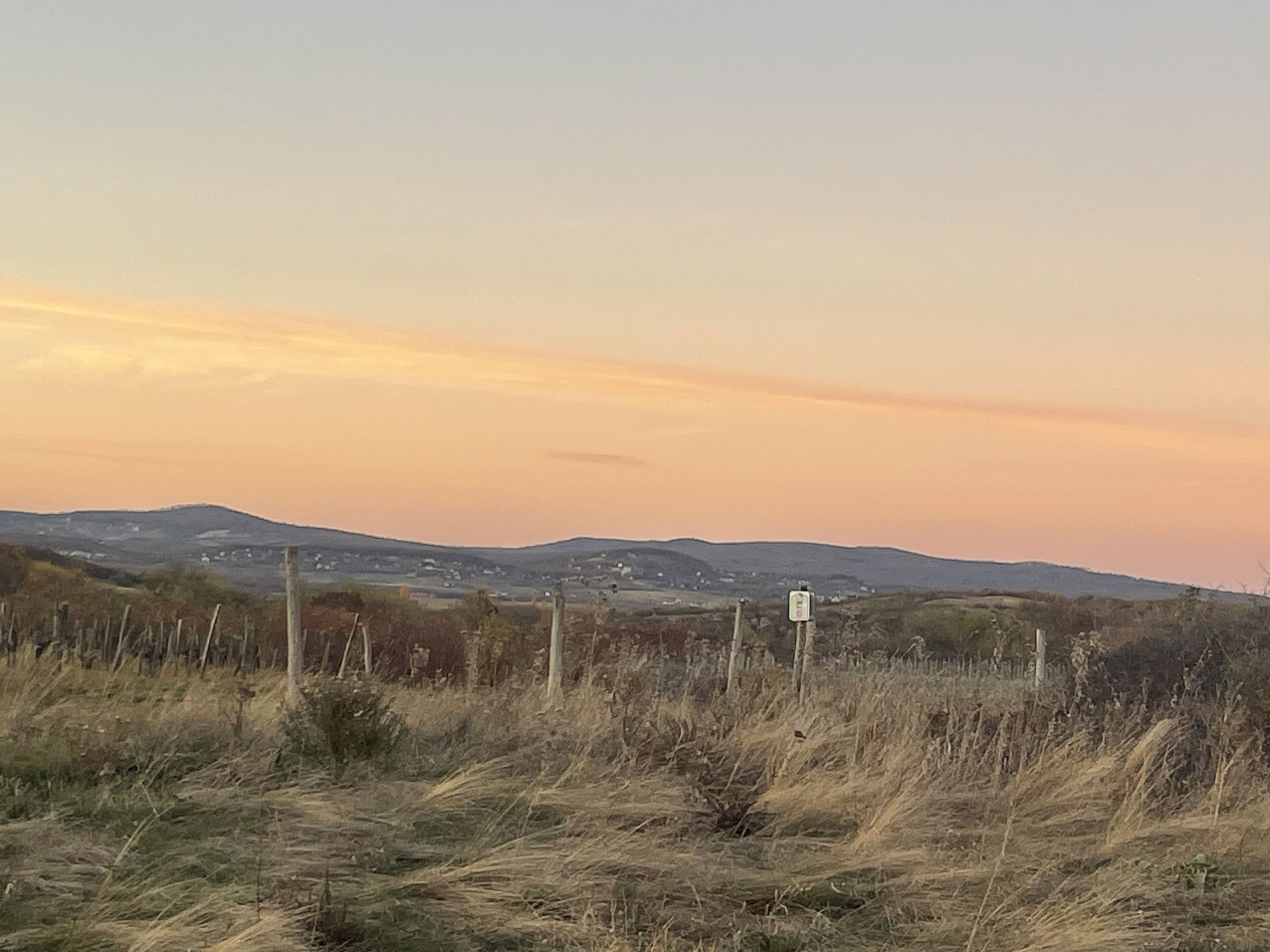 A két terület között út húzódik, szomszédja egy elkerített szőlő.