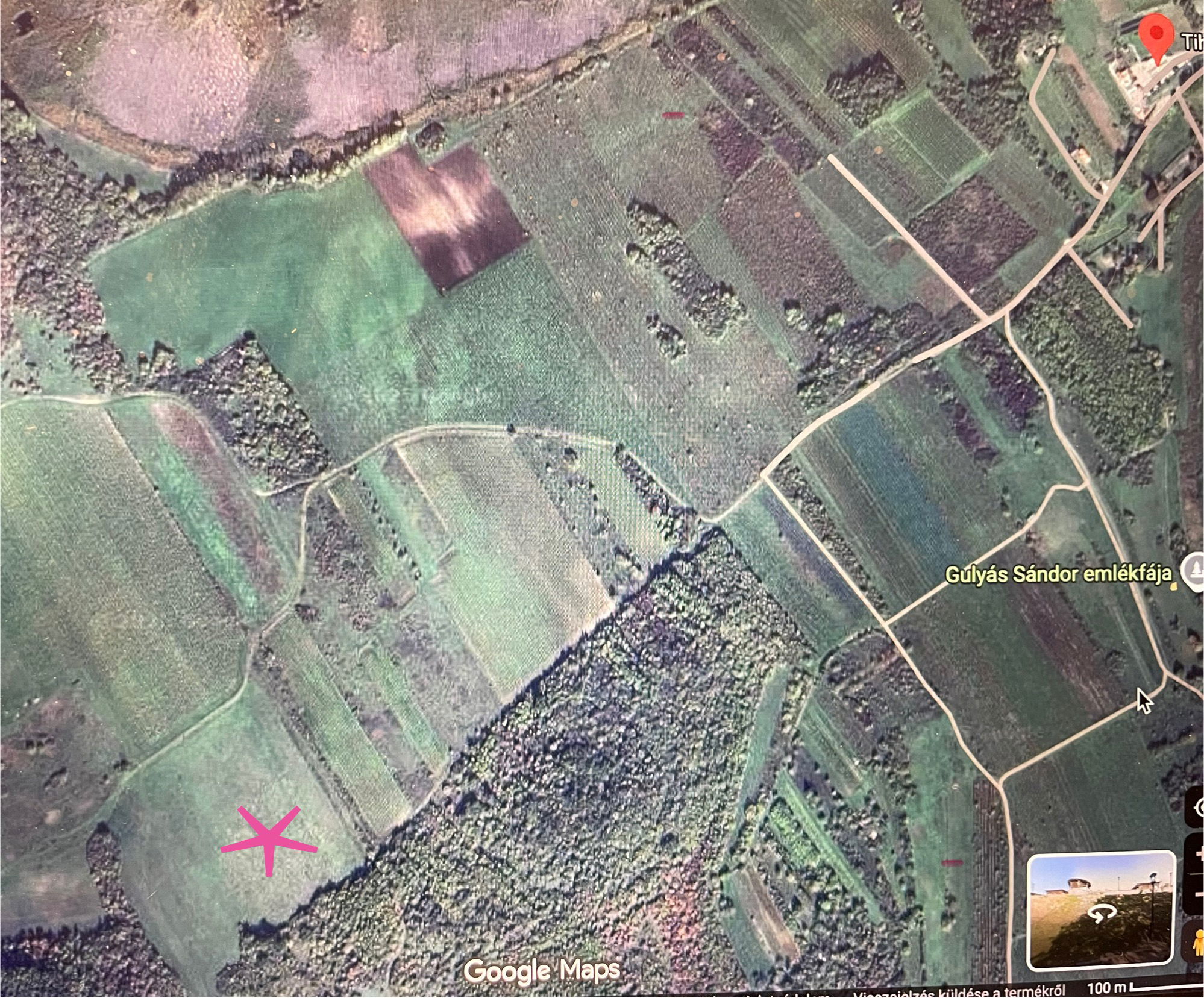 A magenta csillag tájékoztató jelleggel és nem pontosan jelöli az eladó földet.